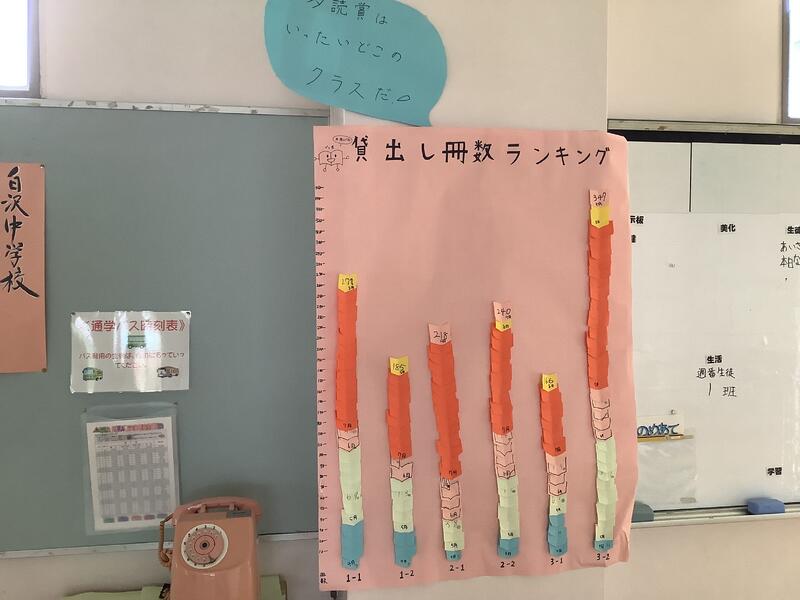 昼休み、昇降口の掲示に目を配ると、図書委員会が各学級の読書量をグラフにしていました。学級によって差があるようです。秋といったら、「読書の秋」です。昼休み図書室に足を運ぶのもよいかもしれません。新たな出会いがありますよ。