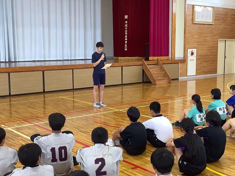 また、生徒会長の柴原侑希さんは、あいさつで、各部活動へ丁寧に一言ずつ勇気の出ることばをかけていました。これで、新人大会に向けて、1、2年生は心が整ったと思います。一人一人が輝ける新人大会になることを願っています。