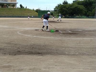 新人戦で白沢地区が会場となる野球とバドミントン競技は、生徒たちが会場作成を行いました。野球部はグランドや会場の整備、バドミントン部はラインテープ貼りやコートの作成など、熱心に行っていました。