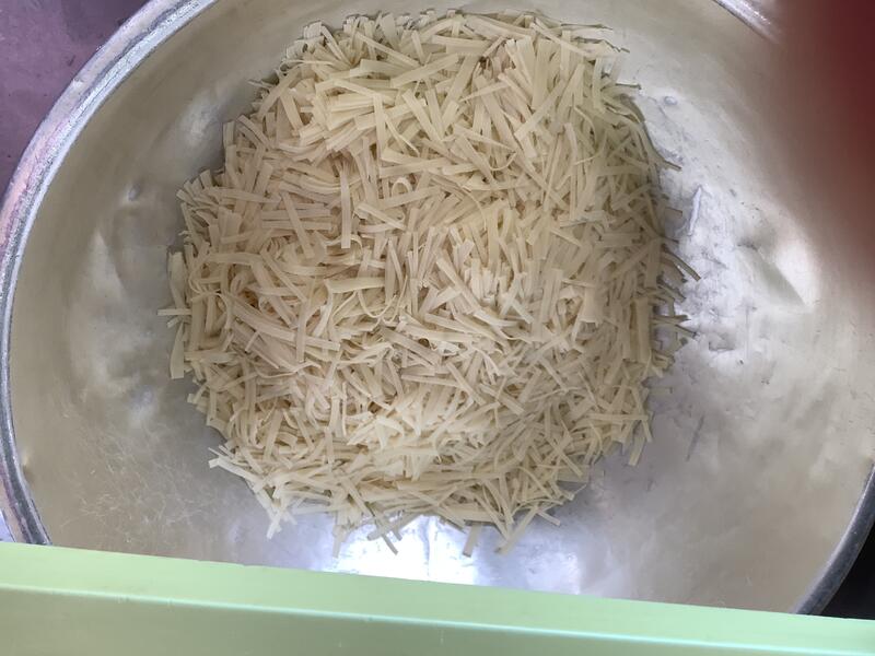 ちなみに、気づきまいたか?いつもは、ナシやりんごは、皮がついています。今回は、ナシの皮をすべてむいて提供されています。 200個以上手作業でむいています。