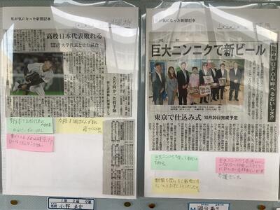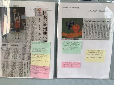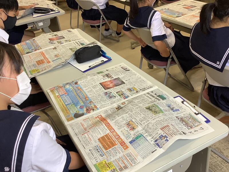 1年生は昨日の新聞出前講座で学んだことを生かし、自分で興味をもった新聞の記事を選び、それを要約し、選んだ理由と感想をまとめました。要約するのに苦労していた生徒も見られましたが、まとめ方やポイントについては、昨日の講話で教えていただいたこともあり、全体としてはスムーズに活動を進めることができました。今回の講座を機に、新聞を通して社会に対する関心を高め、「伝え、広める側」の思いや、「知ること」の重要性について考えてほしいと思います。先日、紹介したように本校の昇降口に「新聞コーナー」を設置してもらいました。「紙でできた新聞」をめくりながら「デジタル」にはない五感で感じる感覚を大切にしていきたいと思います。ぜひ、ご家庭でもお声かけをよろしくお願いします。