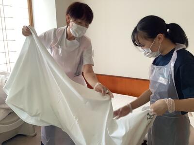 2学年は、昨日同様に職場体験学習でした。事業所の方にたくさんのご配慮をいただき、実りのある体験学習をすることができました。貴重な2日間を提供していただき、大変有難く感じています。体験の様子を数ヶ所見学しましたが、どの生徒も学校では学習できない、貴重な体験ができていたように感じます。この体験を通して、刺激をもらって一つでも成長していればいいなと思っています。明日は、しっかりと体験のまとめをさせていきたいと思います。