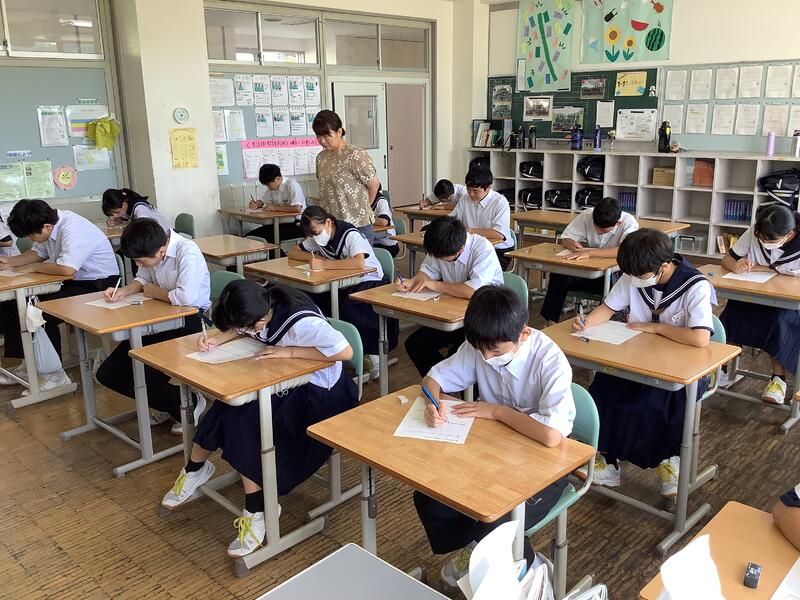 2年生は、2日間の職場体験学習のまとめと礼状作成を行っていました。言葉を選んで丁寧に文章を書いていました。生徒達の書いている様子や体験の感想を話している様子からは、充実感があふれていました。やはり、成長には、刺激(適度なストレス)は大事ですね。