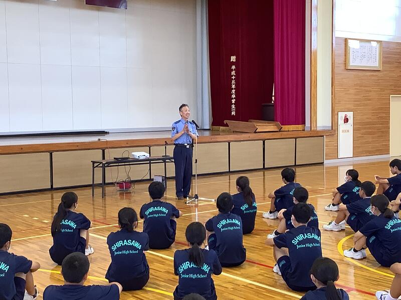 午後の時間は、交通教室です。今回は、白岩駐在所の角田さんに来校していただき、自転車を乗る際の注意点を話していただき、その後、実際に通学路を自転車で走り乗り方を確認しました。本校は高台にあり、どうしても下りはスピードが出てしまうので、無意識に強引な運転をしてしまいがちです。実際、地域の方から指摘を受けることが多くあります。事故が起きてから対応しても遅いですので、しっかりと生徒達に話をしています。また、学校界隈の危険箇所を、校長をはじめ、生徒指導担当でまとめましたので、来週プリントを配付しますので必ずごらんください。