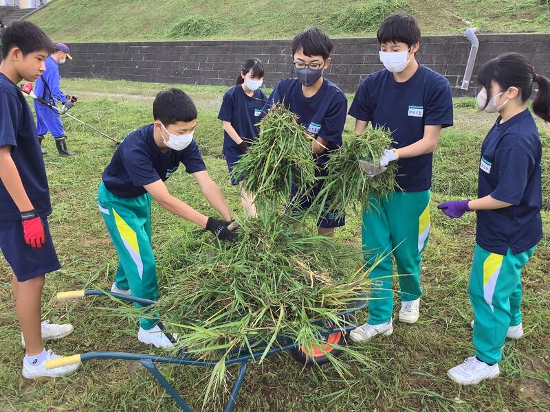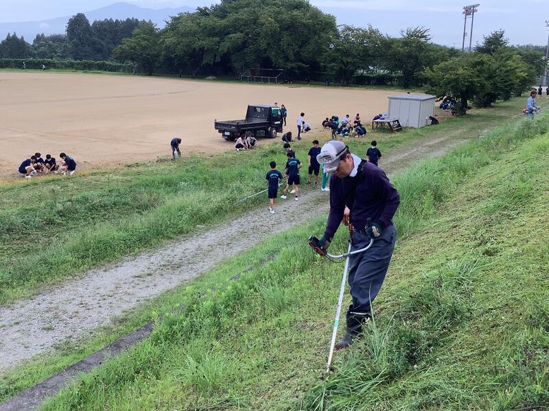 本日は、早朝より草刈り作業を行いました。白沢中学校の敷地は非常に広いです!放っておくと草だらけになってしまいます。そんなこともあり、たくさんの保護者の皆様のご協力の下、敷地内をきれいにしていただきました。当然ながら、生徒達も多数参加してくれました。手作業、草刈り機、草運搬トラックと流れるように作業していただき、月曜日からまた気持ちよく教育活動ができます。教師、保護者、地域、そして、そこで学ぶ生徒が協力しあうことで、教育が成り立っていることを改めて実感しています。本当にありがとうございました。