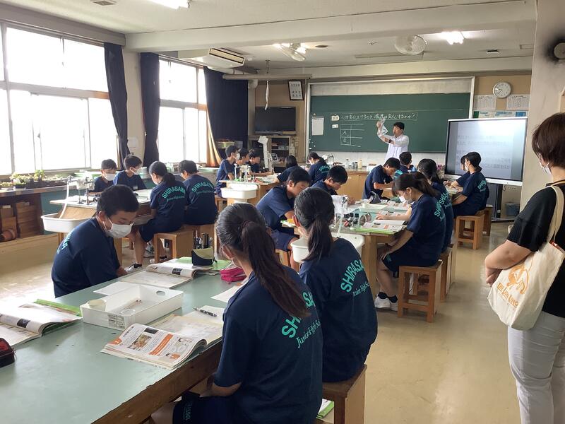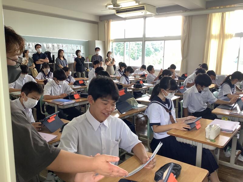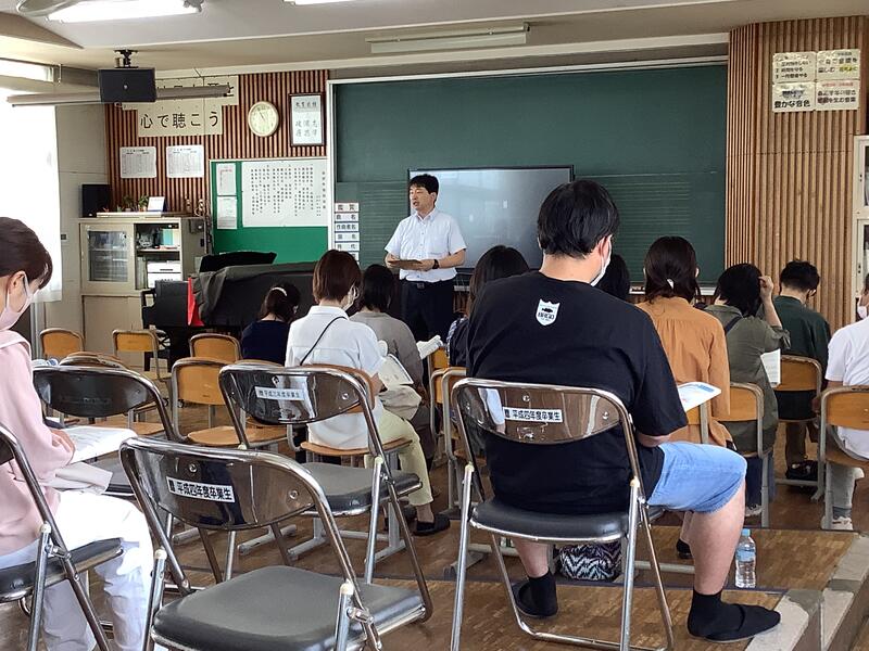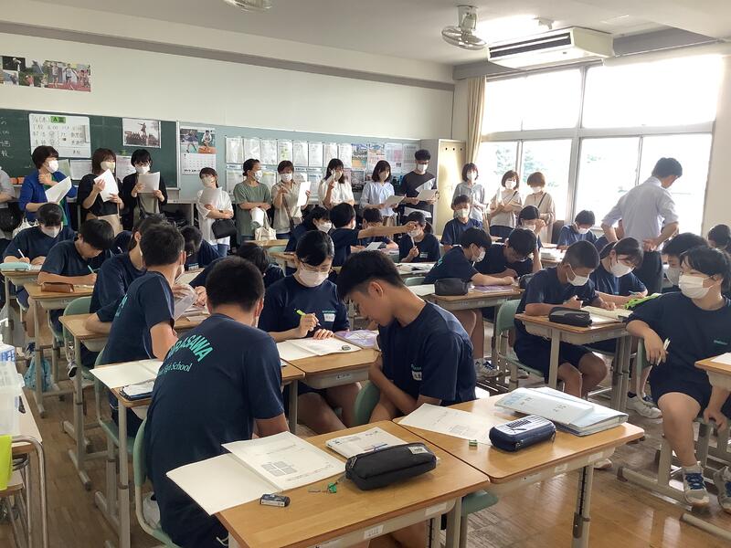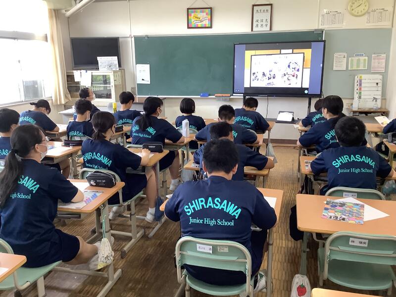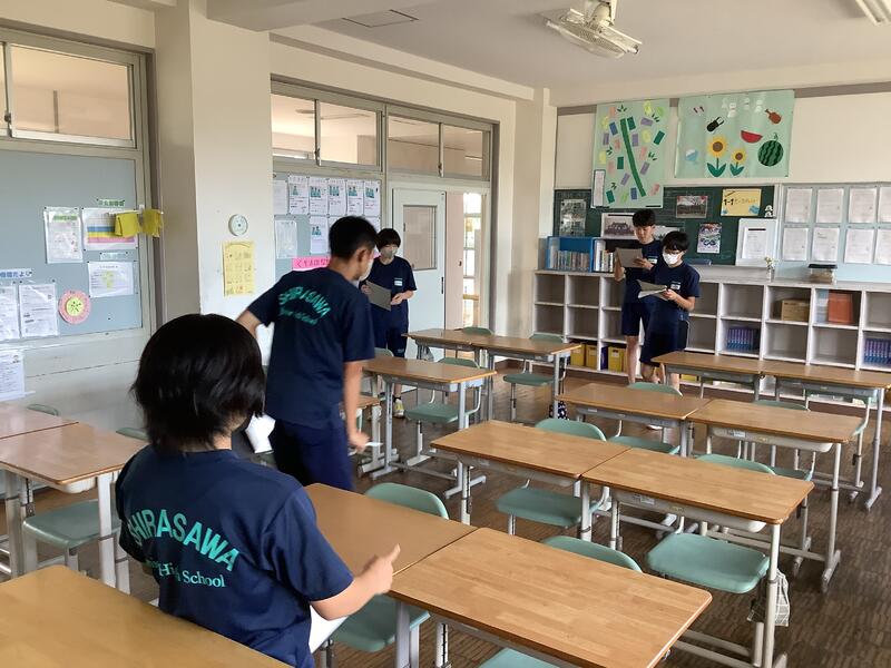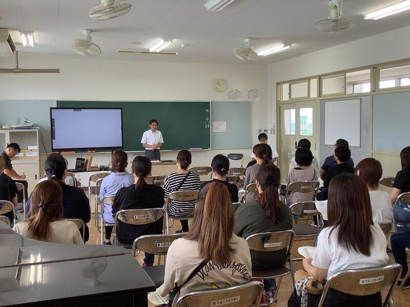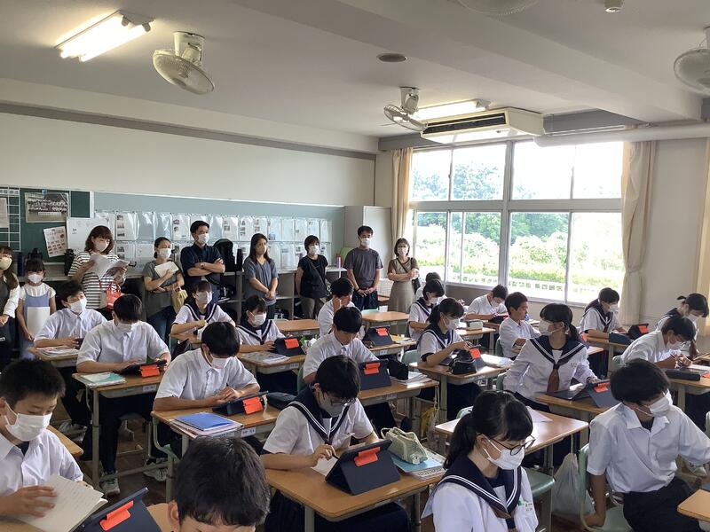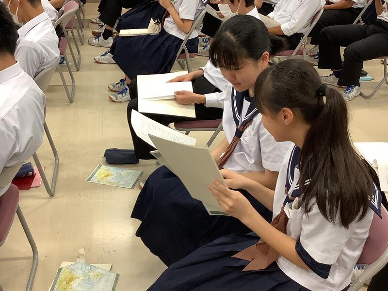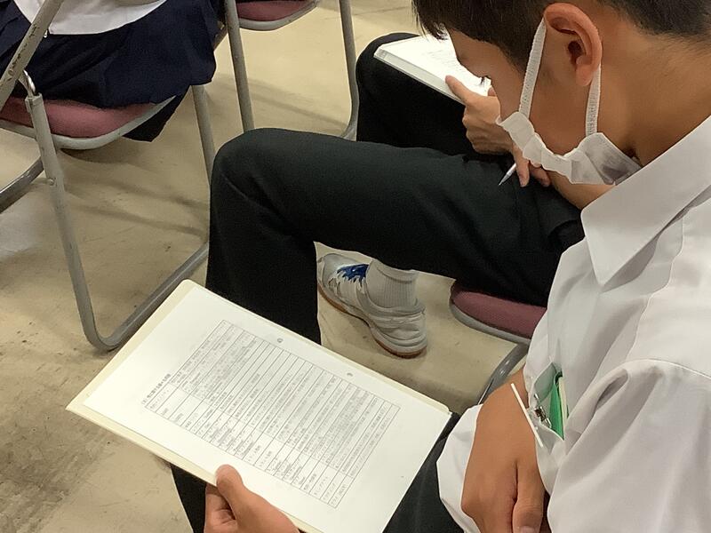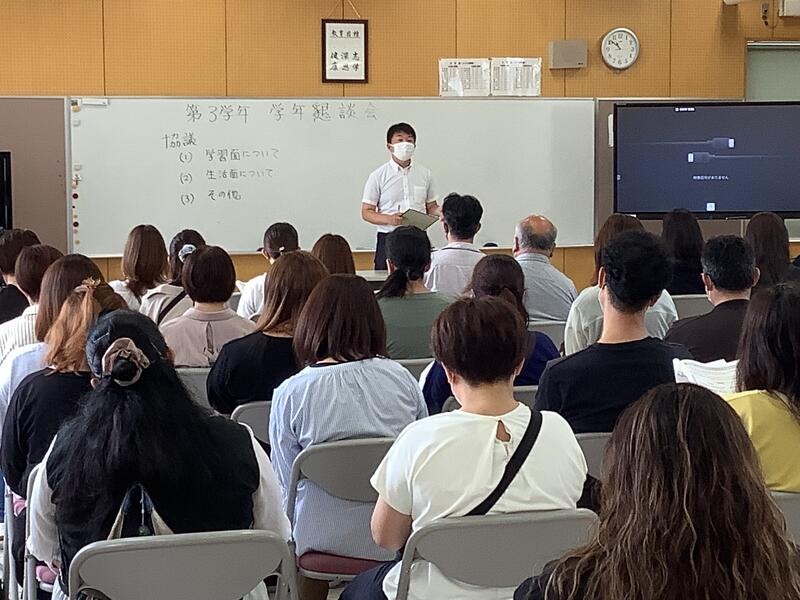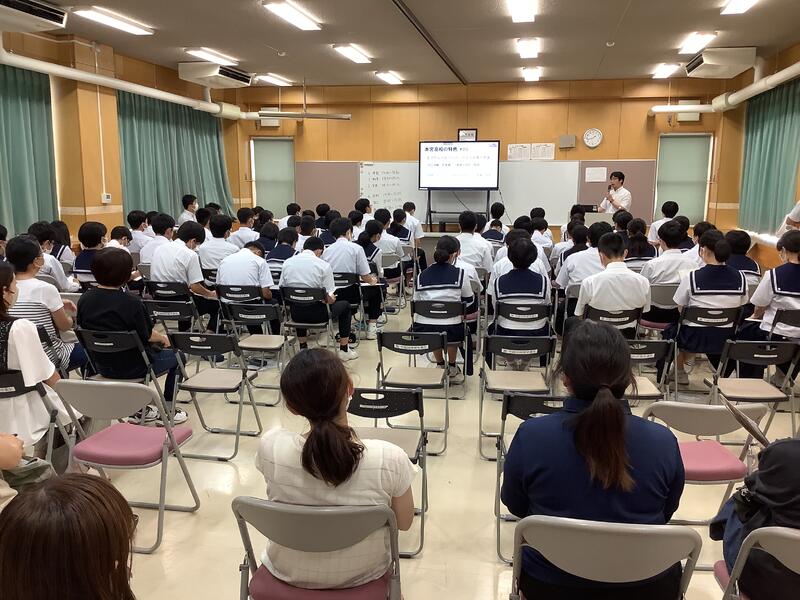 午後の時間は、高校説明会がありました。気温が高いこともあり、2年生は、教室に映像を配信して聞き、3年生は、会議室で聞きました。高校の校長先生の話を聴いて、高校でどのようなことを学習するのかを知ることができたと思います。夏季休業中は、高校での体験入学に参加し、新たなことを知り、さらにイメージを膨らませてほしいと思います。