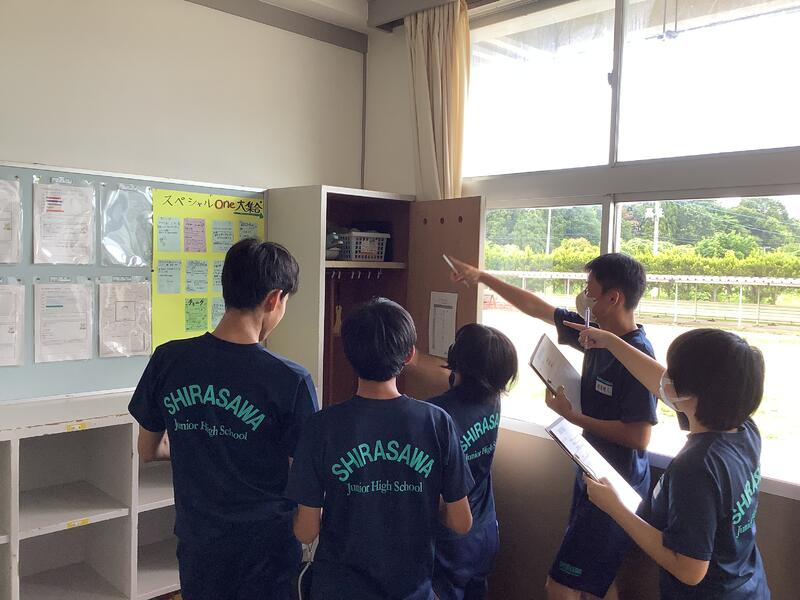 KKKコンテストでは、1年1組が「すばらしい環境で賞」を受賞しました。1年1組は、教室の隅々まで清掃が行き届いており、季節に合う掲示物がされており、ロッカーや清掃用具入れもきちんと整理整頓されていました。コンテストに対する向き合い方が違いました。やるならベストを尽くす、とても良いことです。