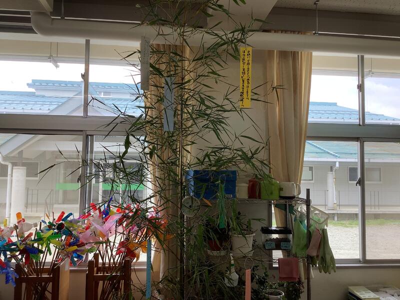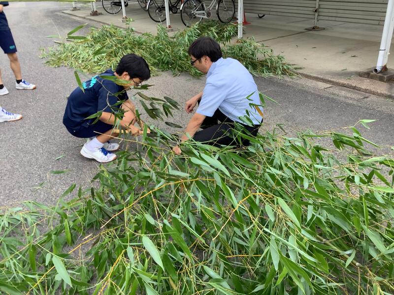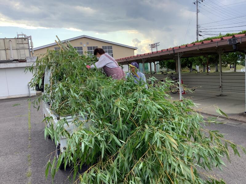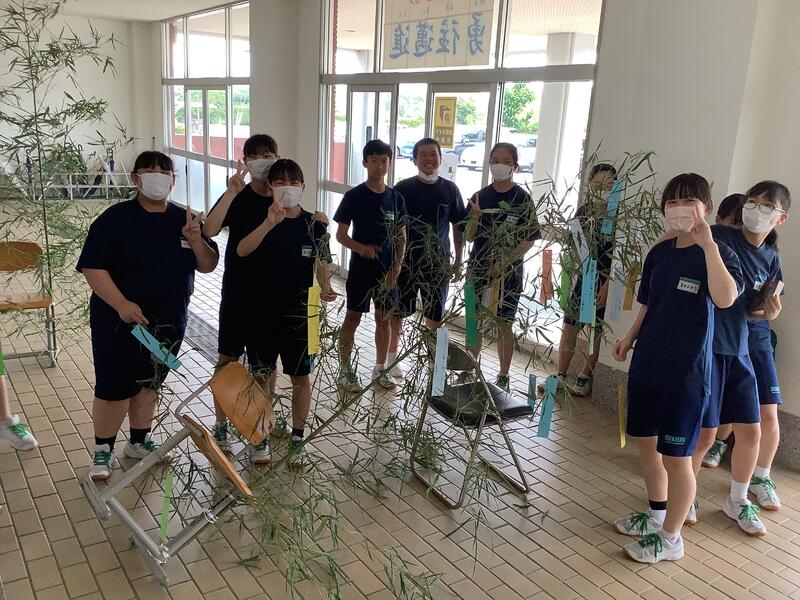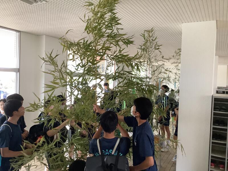 放課後には、待望の竹が届きました。事務の守谷さんの知り合いに声かけしてもらい、快く準備していただき、学校まで運んでいただきました。地域の方に支えられていることを実感しています。明日、生徒達に短冊を渡し願いを書いて、竹に結びつけたいと思います。