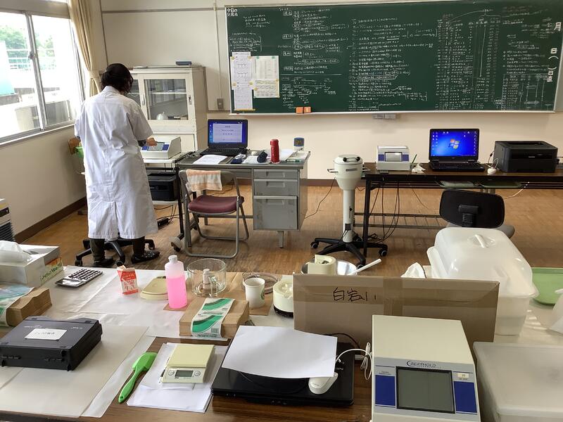 最後に職場から。今日は食品検査室より。中学校では毎日、食品検査員の大内さんと山本さんが、給食の食材に含まれる放射線量を計測しています。基準値以上の放射線量を計測した場合、すぐに知らせて、食材を除去するそうです。昨日聞いたところ、ここ数年は、どの食材もほぼ測定値は0だそうです。ただ、万が一に備えて、生徒達のために毎日丁寧に検査しています。毎日当たり前に食べている給食ですが、裏では、安心安全のためにこのよう検査が繰り返されています。