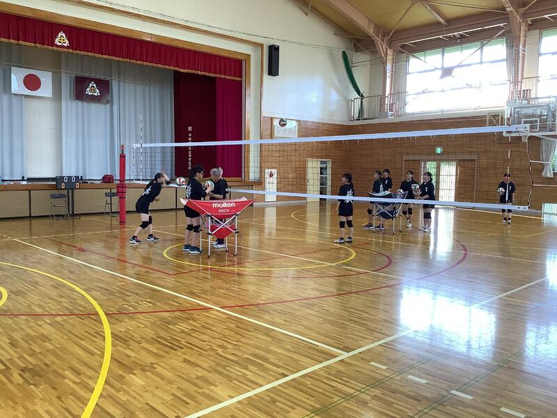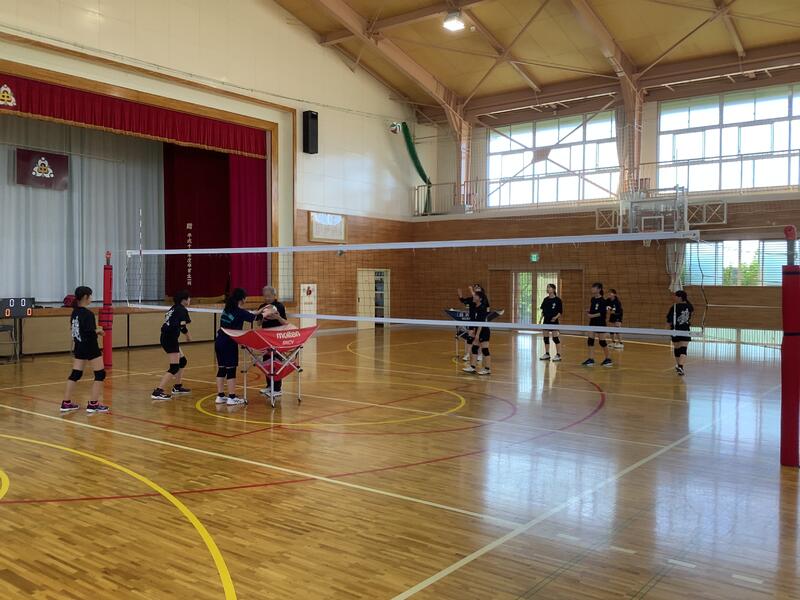 次にバレーボール部。渡辺コーチの指導の下、常に声を出して、元気よく練習に取り組んでいます。個人で黙々とアップを行い、その中に補強トレーニングが入っていて、体幹も鍛えられています。スパイクの練習では、高い音が鳴り響き迫力満点でした。そして、ボール出しとボール集めがたいへんすばやい。意識の高さがうかがえました。