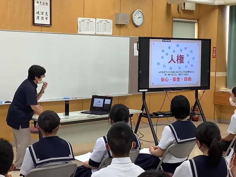 本日3学年では、福祉体験学習の事前オリエンテーションを行いました。本宮市社会福祉協議会方が来校し、福祉について話をしてくれました。バリアフリーとは?、ユニバーサルデザインとは?、などよく耳にはする言葉でありますが、実は良く理解していない部分があると思います。一人ひとりの違いを認め、お互いに助け合い、支え合うことで地域全体がより安心して暮らせるようになるのが一番です。社会の一員として、何ができるか、そしてどう生きていくか考える必要はありますね。実際の体験は、夏休み明けに行う予定です。