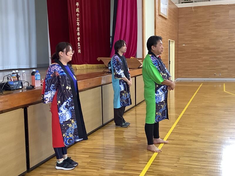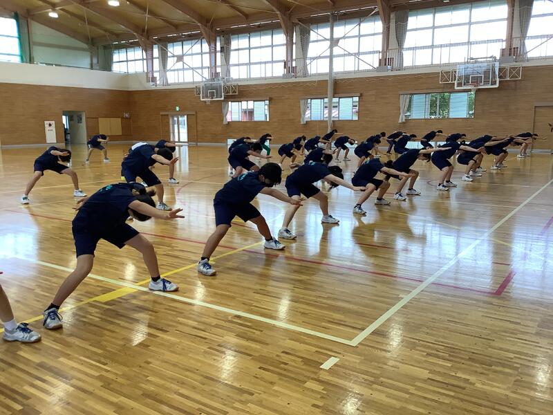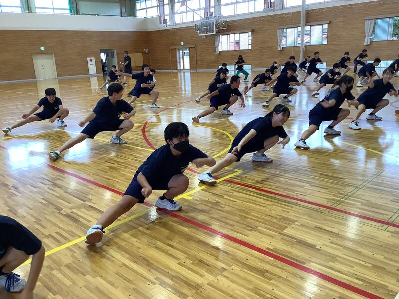 放課後は、白中祭で披露するよさこいの練習です。いつも動画配信でお世話になっているFMもっとCOMの伊藤さん、松本さん、徳重さんに指導者として来校していただき、よさこいの指導を受けました。気温、湿気も吹き飛ばすような熱いご指導をしていただきました。あいさつに始まり、あいさつに終わる、礼儀を重んじるのがよさこいです。北海道で始まったよさこいの歴史、振り付けの意味まで教えていただきました。生徒たち一人ひとり、一生懸命に学び、最後まで笑顔が絶えない練習でした。声を出すと気持ちが上がる。女子生徒も男子生徒に負けずにおおきな声を出して楽しく練習をしている姿がありました。苦手だと感じていることでも、挑戦してみると新たな感情が生まれ、刺激になります。この気持ちを忘れないで今後も個人で練習を続けていきたいと思います。