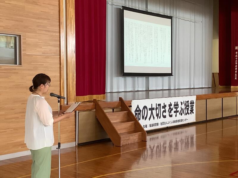 子供を亡くした母親の手紙を佐藤教諭が心を込めて読みました。