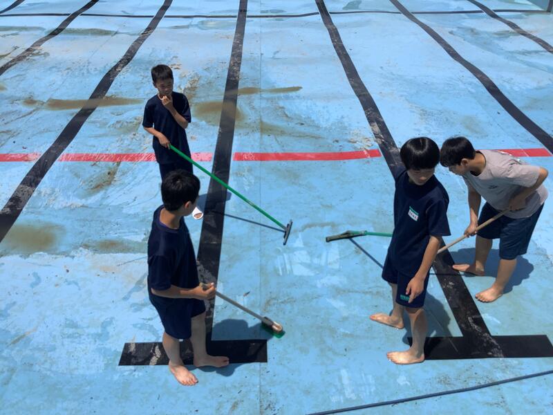 プールの授業の準備ができました。20日に1,2年生が中心となってプール清掃を行い、水をためました。いっぱいになるまで数日かかりました。点検作業をして、本日から授業開始です。水の中に入っているだけでも体に刺激があり、全身運動になるのがプールのすばらしいところです。反面、ルールを守ることや話をよく聴いて活動することを怠ると、事故につながるのが水中での活動です。よりよい子供たちの成長のため、プールの授業を充実させていきたいと思います。