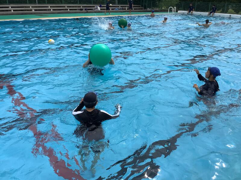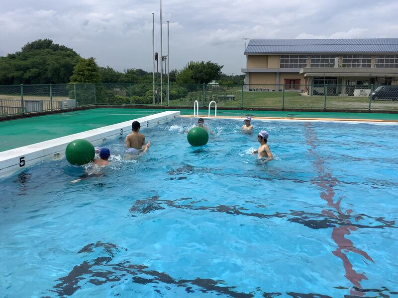 プールの授業の様子です。初めてのプールの授業なので、ルール(体調管理、グループで監視など)をしっかりと話してから入水させました。目的をもってきちんと参加させていきたいと思います。