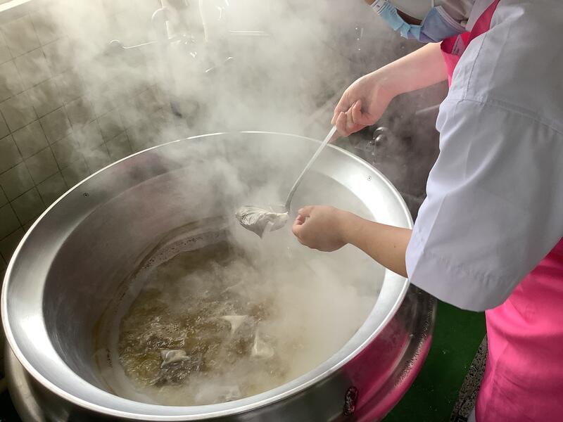 7月を迎える前に、すでに昼の気温が30℃をこえる日がでてきています。生徒達が過ごす教室はエアコンを稼働し、何とか学習に集中できる環境を整えています。ただ、学校で唯一エアコンを稼働できない場所があります。それは、給食調理室です。毎日安心安全で美味しい給食を調理してもらっている調理員さん達は、灼熱の暑さの中で、野菜や肉を高温で調理しています。窓からは、気持ちよさそうにプールでシャワーを浴びる生徒たちが見えるようです。そんな現場で、毎日毎日、時間との戦いをしながら、時間通りに配膳室に給食を並べています。感謝していただきます、といわないといけませんね。