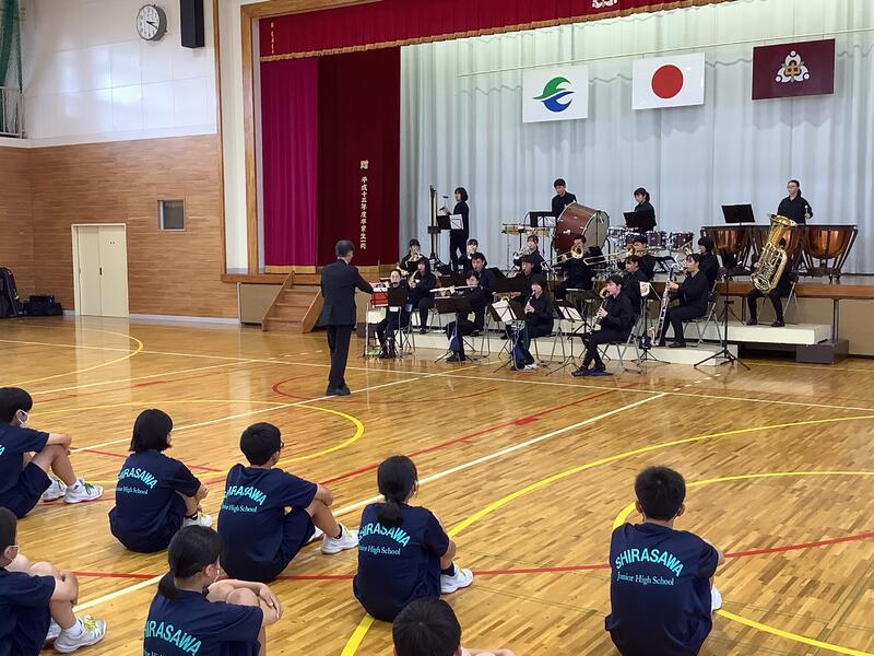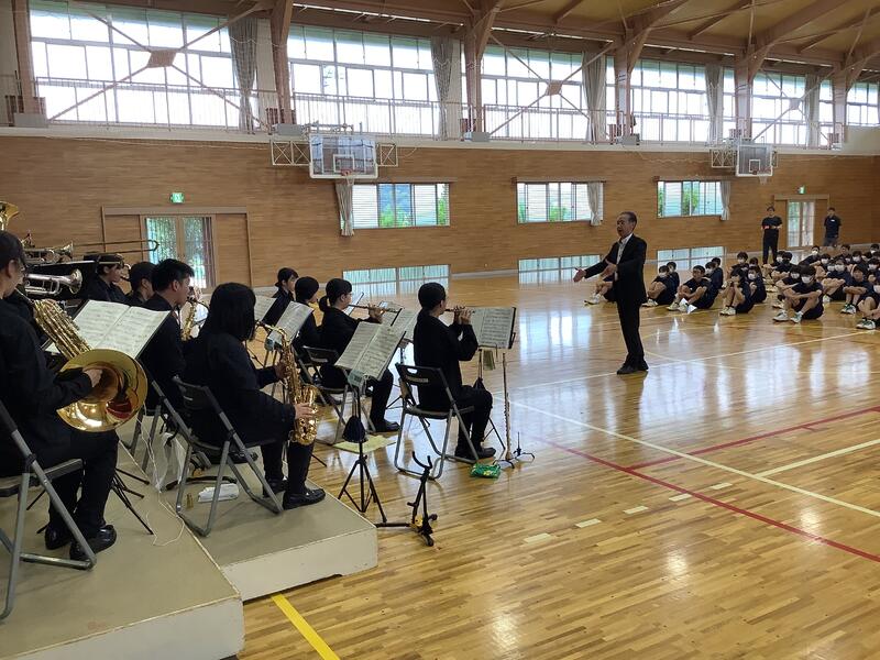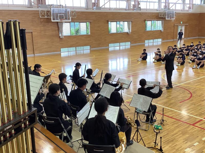 放課後の時間は、吹奏楽コンクール県北支部予選の壮行会を実施しました。吹奏楽部の生徒達は、昼の時間の自主練習と放課後の部活動で力をつけてきました。毎日、昼・放課後に敷地内に流れる練習の音が日に日にきれいになってきているのは周知の事実です。そして、今日の壮行演奏では、本番同様の迫力のある演奏を披露し、全校生を圧倒していました。本番は、音楽堂で体育館やホールとは響きが違うようで、微調整が必要なようです。本当に難しいですね。あさって本番は、迫力のある演奏を引き出す戦略で、県大会の切符を獲得するように全校生で応援しています。