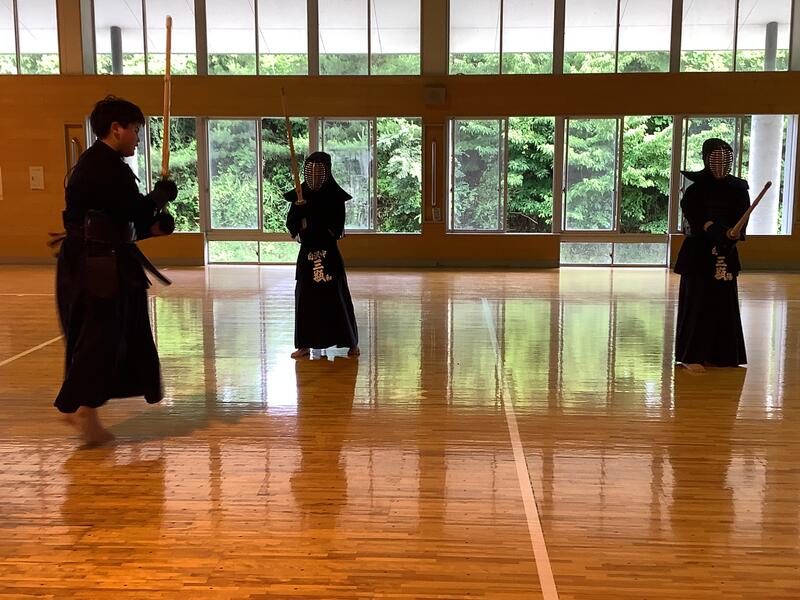 さて、本日は、新たな気持ちで活動する部活動の様子です。まずは剣道部。髙橋教諭のもと、基本練習の繰り返し。見本を見せて、足と竹刀の動きの連動性を意識して真剣に取り組んでいました。竹刀を振るたびに地響きのある音が迫力満点でした。