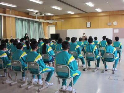 2年生を対象に薬物乱用防止教室を行いました。学校薬剤師の西山様を講師としてお招きして、なぜ薬物乱用することが自身の身体に良くないのかについて、資料をまじえてわかりやすくお話しいただきました。今回のご講話で薬物を乱用することは1度だけでも絶対してはいけないことだと生徒の皆さんは理解できたと思います。