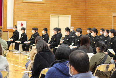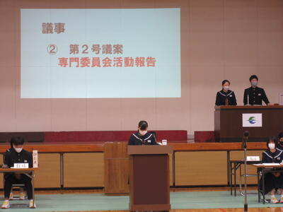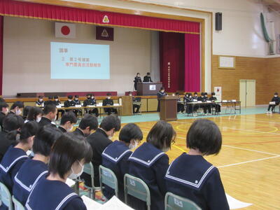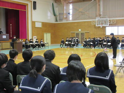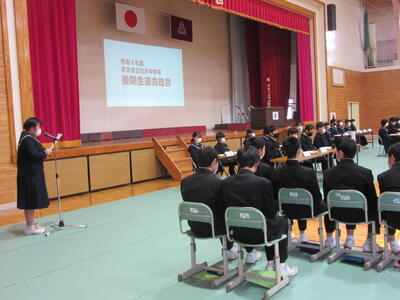 後期生徒会総会をおこないました。体育館の中は、ジェットヒーターは使用しているもののなかなか温度が上がらない中、寒い環境での実施でした。しかし、会自体は質疑応答での追質問が活発におこなわれ、たいへん意義のあるものになったと思います。