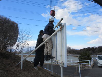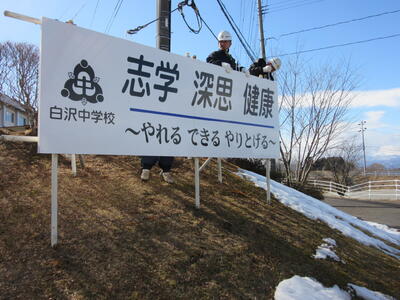 本日、PTA会長様をはじめとした白沢鉄筋工業の皆さまのご協力を得て、校舎正門付近に「教育目標」看板の設置を行いました。本校の教育目標「志学・深思・健康」の文字と「やれる できる やりとげる」の合い言葉の文字がはっきり、くっきりと読み取れて、校外の方にアピールできる看板に仕上がっています。本校にお越しの際にはぜひご覧ください。PTA会長様、白沢鉄筋工業の皆さま、設置ご協力いただき誠にありがとうございました。