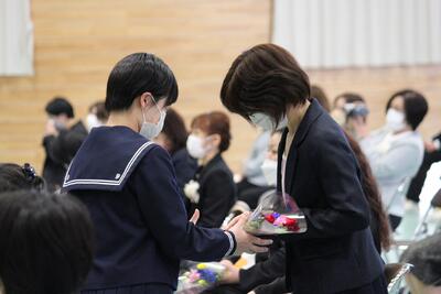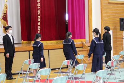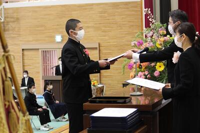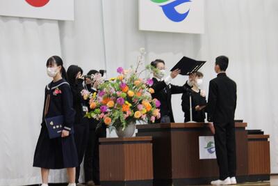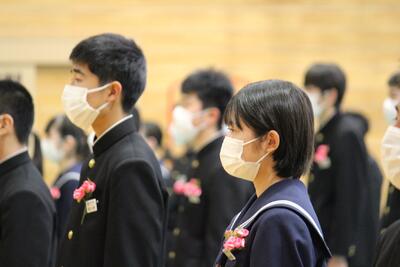 天候にも恵まれて、令和3年度本宮市立白沢中学校第41回卒業証書授与式が行われました。今年度も新型コロナウイルス感染症対策のために式歌を歌うことができなかったり、ご来賓の方々を多数お招きできなかったりと制限がある中での実施でした。しかし、Mot.Comもとみや様のご協力をいただき、式歌を事前に録画したものを式の最中に放映する等の工夫をし、厳粛な中にも感動的な式とすることができました。