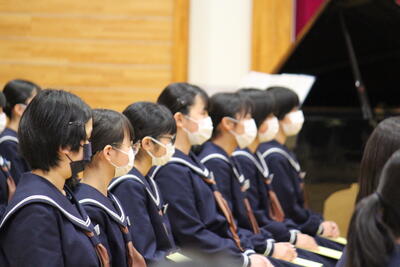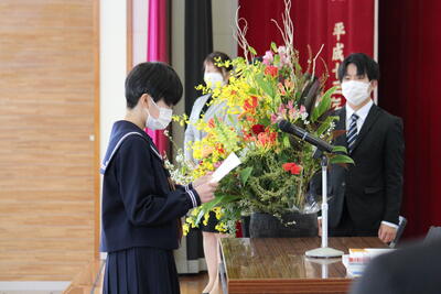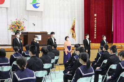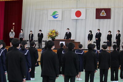 令和3年度の人事異動により,8名の先生方をお迎えしました。先生方からのご挨拶の後に,代表生徒から歓迎の言葉を述べました。