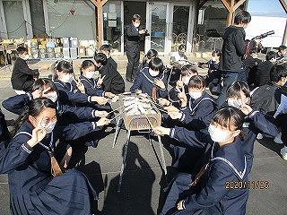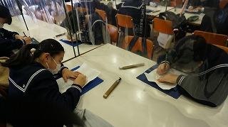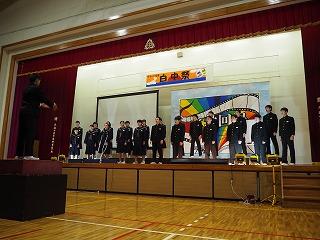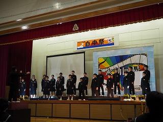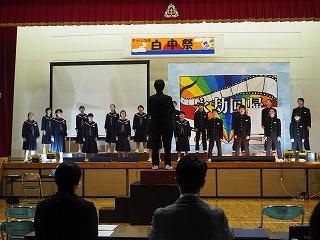 非公開であるためか、多くの生徒が積極的に参加をしてくれました。学年別に行われた合唱コンクールの入場を待つ保護者の方から、記念写真を求められ、笑顔で応じていました。普段はできないことにチャレンジ(?)した生徒たちでした。