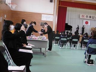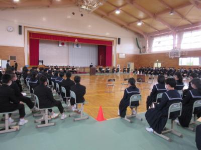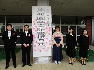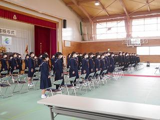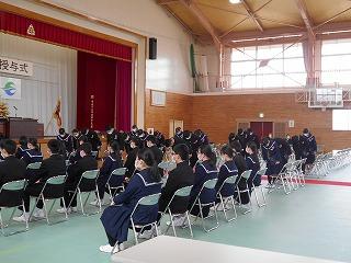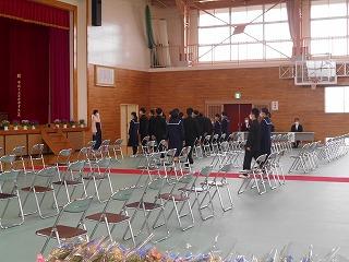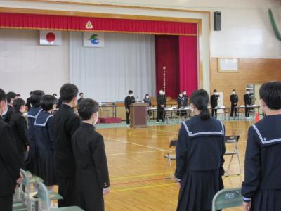 本日、第40回卒業証書授与式が挙行され、74名が無事に義務教育を終えることとなりました。新型コロナウィルス感染拡大防止のため、在校生は2年生のみの参加とはなりましたが、前日の準備では1・2年生全員で準備を本日を迎えました。