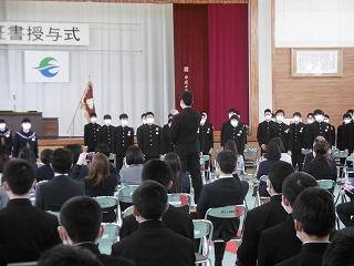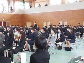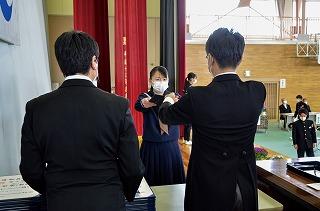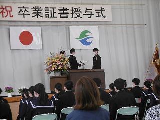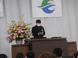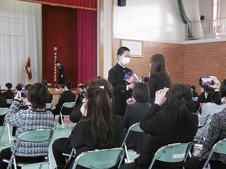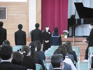 隊形も昨年までとは異なり、練習も時間も十分には取れませんでしたが、今日の本番は本当にすばらしい式となりました。卒業生は堂々と入退場し、証書授与もスムーズに行われ、2年の遠藤(真)さんの送辞、卒業生代表の三瓶(瑞)さんの答辞も大変すばらしいものでした。そして最後に卒業生が歌った「群青」では、先生方も、保護者の方もその美しい歌声に、様々な想い出が重なり、目頭を熱くしていました。