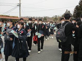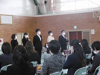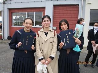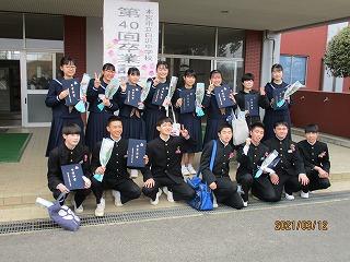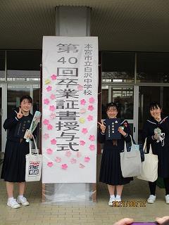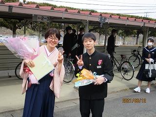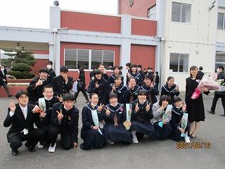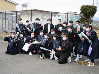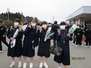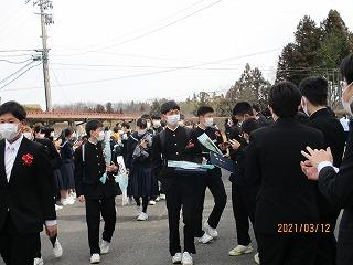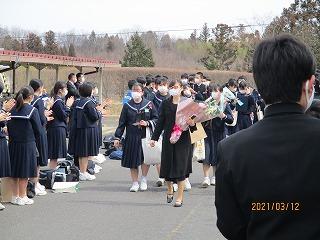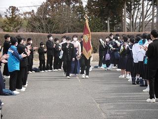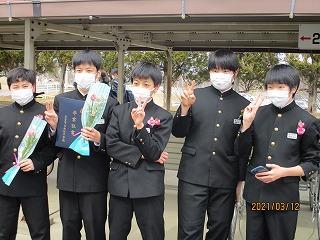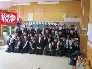 外では、1・2年生が3年生と最後のお別れをしました。部活動ごとや出身小学校で写真を撮ったり、先生方との記念写真を撮ったりしていました。本当にあっという間の3年間でした。卒業生の皆さん、ご卒業本当におめでとうございます。今後の皆さんのご活躍を祈っております。