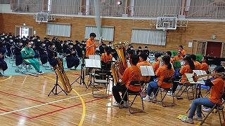 また、吹奏楽部の演奏は、メイプルコンサートで保護者の皆さんには聞いていただいたこともあり、全校生に向けて発表をしました。3年生は、この演奏で引退となりました。今までの練習の成果を発揮できたと思います。