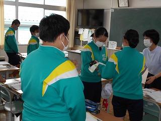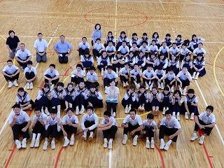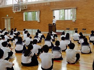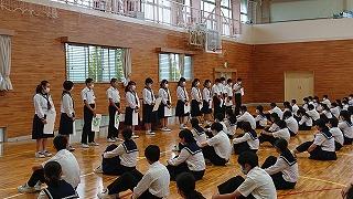 最後に、2学期から産休となる養護教諭に生徒会長からお礼のことばと生徒全員からの寄せ書きが贈られました。元気な赤ちゃんの誕生をみんなでお祈りしたいと思います。