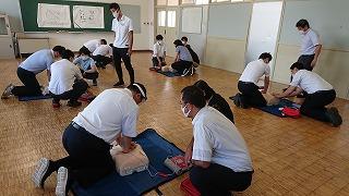 本校職員は、全員以前に研修を受けた経験がありましたが、久しぶりにAEDを使ってみたり、胸部圧迫を行ってみると、忘れていたり、上手くいかなかったりしており、研修の大切さを感じました。