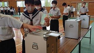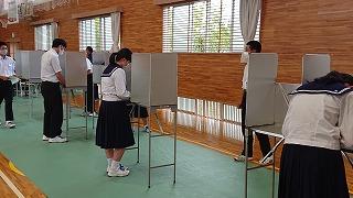 1・2年生を中心とした、新生徒会役員を選ぶ選挙が9/7(月)に行われました。立会演説会では、立候補者が自分の公約や取り組みたいことについて在校生に訴えました。応援者も含め、立派な演説でした。また、聞いていた在校生も、すばらしい態度で聞き入っており、充実した立ち合い演説会となりました。選挙の結果は即日開票され、新たな7名の生徒会役員が選出されました。文化祭明けから、本格的な活動になります。頑張ってほしいと思います。