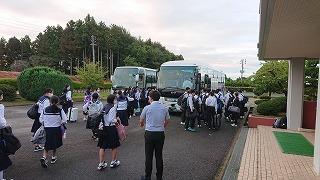 新型コロナの影響で、行き先も関西から函館へ、2泊から1泊と変更された修学旅行ですが、無事に行うことができました。出発式は5:40からだったこともあり、5:20頃から生徒が集合を始めました。