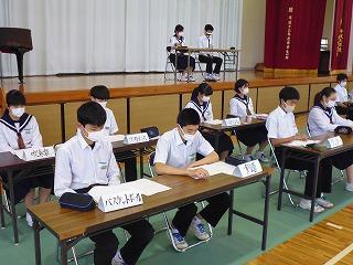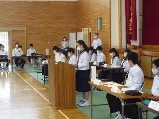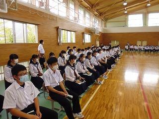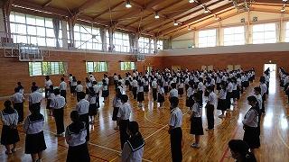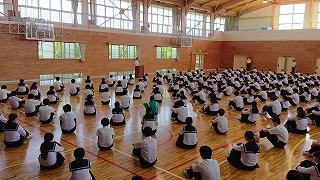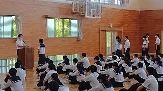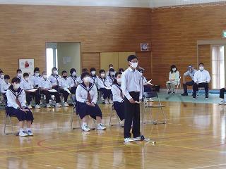 21日に中体連総合大会の代替えとしておこなわれる、安達地区運動部活動交流大会の選手壮行会を本日おこないました。できるだけ生徒の間隔をあけたり、マスクを着用した状態でおこないました。