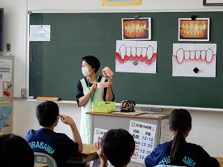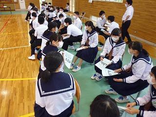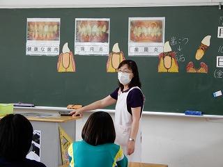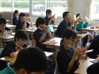 1年生を対象に、今年も歯磨き教室を実施しました。3名の歯科衛生士の方においでいただき、各クラス毎に実施ました。内容は、歯周病の恐ろしさについてや歯の磨き方について、実演を交え、丁寧におこなっていただきました。生徒たちは真剣に取り組んでいました。
