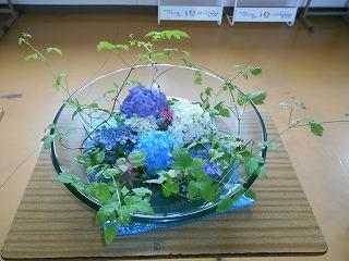 また、事務職員さんがいつも季節の花を学校中に飾ってくれています。今はあじさいの季節です。玄関の水盆に浮かべられたあじさいが美しく、子どもたちの心も和ませてくれています。