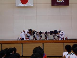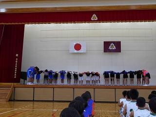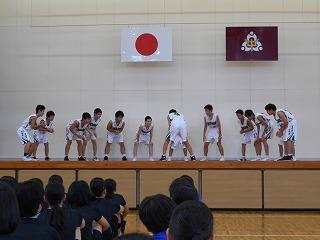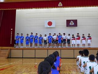 20日に中体連新人大会の選手壮行会が行われました。2年生を中心とした新チームとなって初めての大きな大会です。各部とも気合いの入ったあいさつと工夫を凝らしたパフォーマンスを行いました。応援団や3年生から激励を受け、明日からの新人戦での活躍を誓っていました。各部の健闘を期待しております。