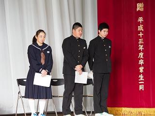 今年度の教育課程が全て終え、修了式が行われました。1年代表の渡辺(萌)さんと2年代表の荒川(恵)さんに校長先生から修了証書が渡されました。