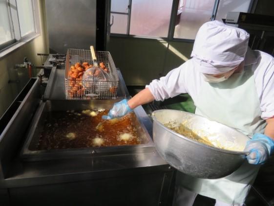 また、おからドーナツは、調理員さんの得意料理を給食の献立に取り入れました。冬休み中に白沢地区の調理員さんが集まって試作をしました。生地におからを入れることでふんわりと仕上がります。ひとつひとつ愛情を込めて作っていただき、美味しくいただきました。