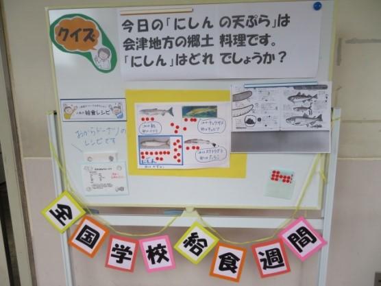 1月24日(木)から全国学校給食週間となっており、本校でも県内の食材をたっぷり使った給食や会津・中通り・浜通りの郷土料理を給食に出したりしています。その一部をご紹介いたします。