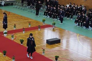 始業式では、校長先生の話の後、各学年代表から「冬休みの反省と新年の抱負」については発表がありました。1・2年生は進級に向けて学校生活や学習等の抱負を、3年生は卒業、入試等に向けての取り組みについて力強く述べてくれました。3学期は最も短い学期です。充実したものになるように学校全体で取り組んでいきたいと考えています。今年もよろしくお願いします。