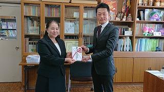 3/18(月)に、本校の平成5年度卒業生の代表の国分雅市さんと佐藤英之さんがおいでになり、白沢中学校の後輩たちにと同窓会を開いた際に集めた寄付金(8万円)をいただきました。今回いただいた寄付金は、来年度の生徒の活動のために大切に使わせていただきます。ありがとうございました。
