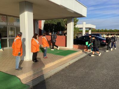 生徒にとっては、風もなく、太陽も出ていたので、気持ちの良く登校できたと思います。これからは積雪もあるので、徒歩通学の生徒にとってつらい季節となりますが、防寒対策をして元気良く登校してほしいです。(※ポッケに手を突っ込んで歩く生徒がやや目立ちました。転倒時に、ケガ防止のため手袋の準備を!)
