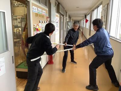 ~ 教師2人で刺股を使ってさらなる侵入を防ぐ ~