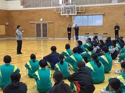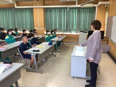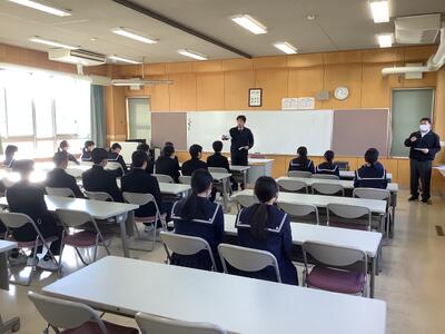本日、大川レディースクリニックの助産師 長谷川先生を講師にお招きし、「命の大切さ」についてお話をしていただきました。胎児人形を抱いたり、胎児の心臓の音を実際に聞いたりする活動を通して、生命の誕生について学びました。赤ちゃんを大事そうに抱っこする姿が見られ、命の重みを感じることができたようです。生徒たちからは「流産や死産など、安全に生まれることができないことも少なくない中で、命を大切にしようと思えた」「親がこんなにも大変な時期を過ごし、そして大切に育ててくれたのだなと、改めて感謝しようと思った」などの感想がありました。自分や友達を大切にし、思いやりの心をもった人になってほしいと思います。