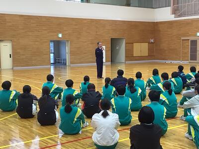 本日は朝の全校集会からのスタートでした。いよいよ寒くなってきたので、体育館での朝の全校集会は今回で終わりとなります。(次回からは放送朝会です。)