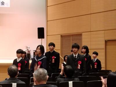 11月23日(土)、第18回本宮市青少年健全育成推進大会がサンライズもとみやで行われました。大会では本宮市代表の児童・生徒が「少年の主張」に参加し、発表を行いました。本校からは2年生の小山さんが代表として参加しました。